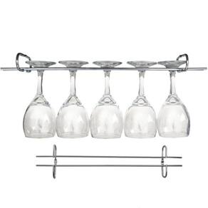Garantia: 90 dias / Peso: 130g / Cor: Cromado / Ref: 83011X8 Dimensões: 25cm (C) x 9cm (L) x 4cm (A) Diâmetro máximo da base das taças: 7cm. Cuidados: Não lavar com materiais abrasivos. Capacidade: Varia conforme o diâmetro da base de suas taças. Conteúdo: 8 suportes. Distância entre os furos de fixação: 19cm Fixação: Através de dois parafusos, os mesmos não acompanham o produto.