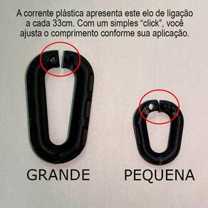A corrente apresenta elos de ligação a cada 33cm, em um segundo, você ajusta o comprimento conforme sua aplicação.
