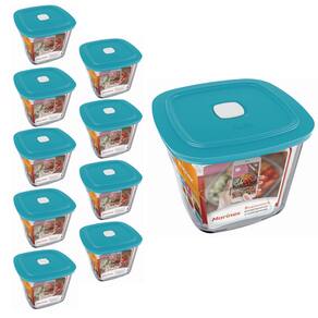 Pote De Vidro Quadrado Alto Com Tampa Marinex 1L 9 unidades