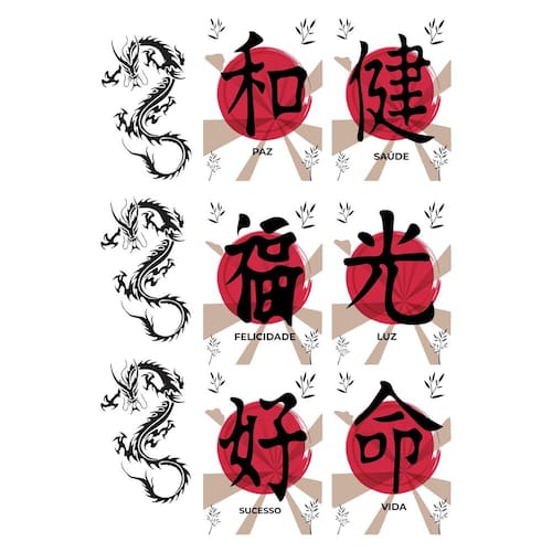 Tatuagem temporária Tamanho da cartela 20 x 28 cm Tamanho médio das imagens 7 x 6 cmProduto anti-alérgico, atóxico e removível.- Envios de forma ágil e segura.- Atendimento pelo campo de mensagens ao vendedor- Produtos de qualidade, testados, bem embalados e cuidados para você.Duração aproximada de 05 dias (Não esfregue nada sobre a tatuagem).Para aplicar: retire a proteção plástica, aplique sobre a pele limpa e seca (sem loções ou cremes), jogue água pelo verso e retire a proteção após 2 a 4 minutos, deixar secar e não esfregar.