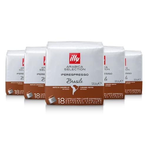 As cápsulas IperEspresso illy permitem que você prepare um café extraordinário em casa com facilidade e praticidade. Cada cápsula contém café 100% arábica, perfeitamente torrado e moído, de cultivo 100% sustentável. O resultado é um autêntico café italiano equilibrado, encorpado, cremoso e nunca amargo. O sistema de cápsulas IperEspresso faz um café espresso com qualidade e facilidade. O sistema de cápsulas iperEspresso usa um processo patenteado de dois estágios para criar um espresso aromático e encorpado com uma crema rica e duradoura. Descubra os cafés das melhores origens do mundo. A torra de cada origem é especialmente calibrada para realçar as notas aromáticas naturais e o perfil de sabor do café. Sobre as cápsulas illy Iperespresso - Café de alta qualidade, conhecido no mundo inteiro pela sua excelência. - Produto , fabricado na Itália. - Uma das melhores e mais famosas marcas de café do mundo. - Café com uma crema maior e mais duradoura. Conteúdo 5 pacotes de 18 cápsulas. Totalizando 90 cápsulas. Sabor Brasil Intenso e saboroso, com notas de caramelo. A torrefação desta origem é especialmente calibrada para aprimorar as notas aromáticas naturais e o perfil de sabor do café. Café 100% arábica. Dose: espresso. Sem açúcar. Modelos de cafeteiras compatíveis Estas cápsulas funcionam em todos os modelos de máquinas Iperespresso Illy. Atenção: essas cápsulas não funcionam nas cafeteiras Dolce Gusto, Três Corações, Delta e Nespresso. Essas marcas usam outros modelos de cápsulas. Observações Validade: 2 Anos Fabricado na Itália. Marca: Não Informado