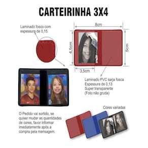 Descrição A clip fabrica as melhores carteirinhas do mercado, priorizando a qualidade e facilidade de uso. As carteirinhas da clip são feitos com as melhores materiais do mercado. Material laminado fosco 0,15mm com sarja fosca super transparente especialmente feita para a foto não grudar. Os dois materiais são soldados em alta frequência, garantindo a fixação perfeita. Cores Azul Preto Vermelho As cores sempre irão . Se quiser mudar a composição das cores, favor mandar mensagem imediatemente depois da compra pelo campo de mensagem História clip O suíço, alexander buholzer decidiu conhecer a america do sul, onde o clima e a ção dos brasileiros fizeram com que o brasil se destacasse entre os outros países.Assim em 1994, escolheu ficar e montar sua empresa nesta linda terra tropical. Alex desde pequeno tinha um grande interesse em guardar todos os retratos da sua família, principalmente, porque sem estas fotos não existiriam suas histórias . Desta maneira nasceu a empresa clip e junto com ela todos os seus álbuns, porta retratos e produtos para guardar as melhores lembranças de sua vida................ Marca: Não Informado
