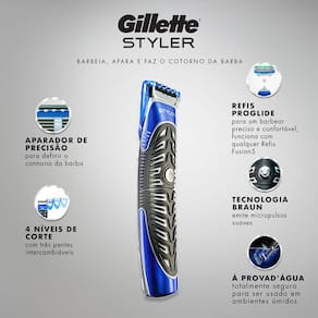 Com este moderno aparelho da Gillette você vai se barbear com muito mais praticidade no dia a dia. E você pode, ainda, utilizá-lo no corpo. São 5 lâminas finas e afiadas que permitem um barbear sem esforço e é possível usá-lo no banho, pois é a prova d´água. Perfeito para aparar, raspar e estilizar.