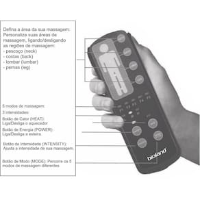 - 5 modos diferentes de massagem (pré configurados no controle)