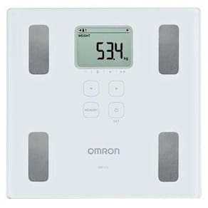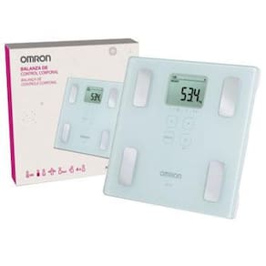 A Balança HBF-214 da Omeron é super completa. Tem 7 indicadores de parâmetros corporais como: peso corporal, gordura corporal, Índice de Massa Corporal (IMC), músculo esquelético, metabolismo basal, gordura visceral e idade corporal.