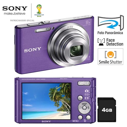 Linda, prática e fácil de usar, a nova DSC-W830 é a junção perfeita de design e tecnologia! Com Lentes Carl Zeiss e Senso de Imagem de 20.1 MP, vai ser difícil não se surpreender com a qualidade de suas fotos. Este modelo conta também com Foto Panorâmica 360º, Visor LCD de 2.7", Zoom Óptico de 8x e Estabilizador Óptico de Imagem, recurso que anula a tremulação das mãos e garante fotos sempre nítidas.