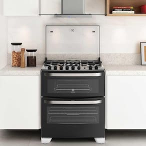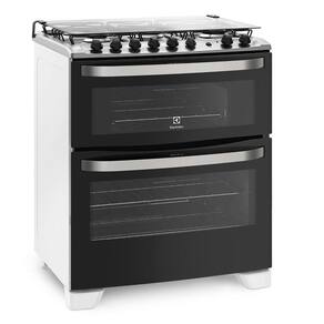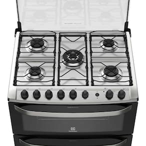 O Fogão de Piso 5 Bocas Duplo Forno e Tripla Chama 76DBA Electrolux é um produto de qualidade e com recursos superiores que irá contribuir para o preparo das melhores refeições para você, sua família e seus convidados. Com queimador de tripla chama, o fogão 5 bocas permite cozimentos mais eficientes e rápidos, garantindo mais agilidade no preparo das refeições. Composto de dois fornos com capacidade total de mais de 100 litros, sendo o forno superior elétrico de 94,5 litros e o inferior, a gás, de 38,8 litros, esse fogão Electrolux permite o preparo de pratos simultâneos e bem maiores. Tem painel de mesa com grafismo a laser, o que impede de ser removido pela ação de produtos de limpeza, mantendo o fogão sempre com aparência de novo, dando mais charme ao ambiente. Tenha certeza que essa opção Electrolux é a compra ideal para pessoas mais sofisticadas como você.