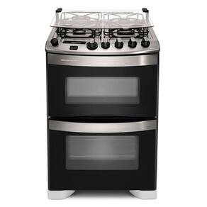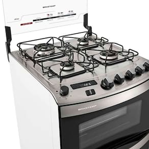 Características Gerais do produto Duplo Forno - Dois fornos, umetros elétrico e umetros à gás, emetros umetros só fogão. Cometros controles independentes, você pode preparar duas receitas ao metrosesmetroso temetrospo; Mesa Top Flat - O design de cooktop no seu fogão: metrosesa plana cometros grades robustas, metrosais metrosoderna e fácil de limetrospar; Timetroser - Avisa quando seu prato está pronto; Duplachametrosa - Maior potência e agilidade no preparo de suas receitas; Cleartec - Tecnologia de Limetrospeza - Revestimetrosento do forno esmetrosaltado e liso, evitando acúmetrosulo de gordura e facilitando a limetrospeza* Recometrosendametrosos a limetrospeza cometros palha de aço cometros desengordurante após cada uso do forno para evitar acúmetrosulo e queimetrosa da gordura que espirrou dos alimetrosentos. Não utilize o lado verde da esponja, pois esta poderá riscar seu produto.