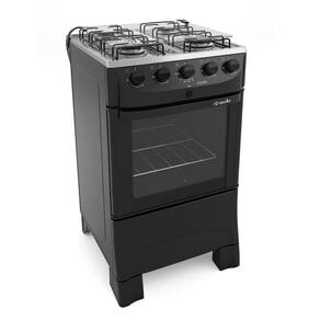 Características: Tampo de vidro temperado Mesa em inox Botões removíveis Queimadores de aço esmaltado Painel ergonômico Pés altos Encaixe dos queimadores vedado à mesa 1 queimador família 2W 3 queimadores médios 1,7W Queimador de forno 1,9W Acendimento automático total Puxador de forno em metal com abertura ergonômica Forno total clean com amplo visor Forno com 1 grade ajustável em dois níveis Proteção térmica com duplo vidro no forno Forno com válvula de segurança