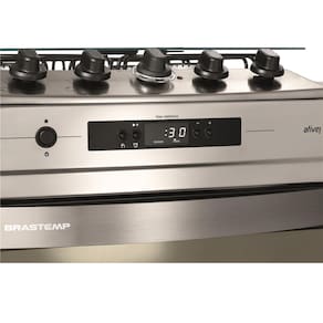 O fogão Brastemp Ative! Timer Grill facilita o seu dia a dia na cozinha para você ter mais tempo para fazer o que gosta. Ele vem com Timer, que ajuda a controlar o tempo de preparo dos alimentos, e Dupla chama, que é maior, mais potente e distribui o calor por igual. Assim, você pode preparar suas receitas bem mais rápido. Ele também tem o grill elétrico para dourar, gratinar, e deixar tudo mais bonito e saboroso. Grades individuais, que podem ser lavadas na pia ou na lava-louças.