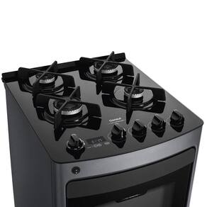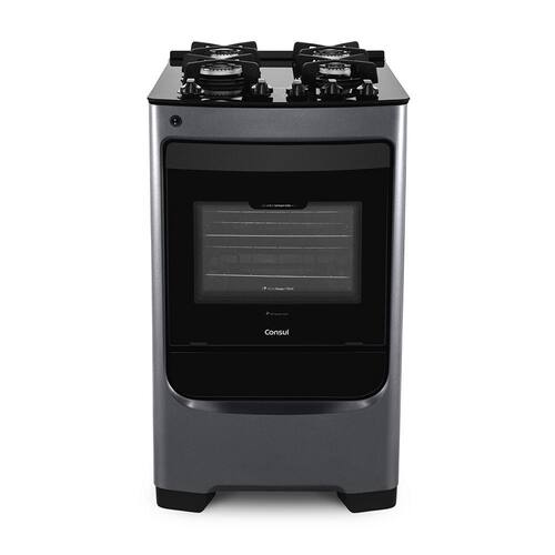Fogão Consul Piso 4 Bocas Titanium Mesa de Vidro Bivolt CFO4VATA Consul está trazendo o fogão que vai facilitar sua vida e embelezar sua cozinha. O Fogão Titanium 4 Bocas da Consul tem um design diferenciado, seu design se assemelha aos práticos e modernos cooktops, permitindo que a limpeza seja feita com menos esforço e tempo.Para lhe proporcionar mais conforto, o fogão possui timer com alerta sonoro, ou seja, você fica muito mais livre para fazer outras coisas enquanto sua comida fica pronta, pois quando o tempo do timer finalizar você ouvirá o alerta sonoro. Sua mesa é de vidro temperado, e suas grades são de Ferro Fundido, sendo ideais para aguentar os preparos do dia a dia e ainda facilitando a limpeza do fogão. Ainda pensando em facilitar na hora da limpeza, possui Forno Limpa + Fácil, junção da tecnologia Cleartec e do vidro interno vedado, que evita o acúmulo de gordura e deixa tudo mais fácil para limpar. E para ajudar, seus manípulos removíveis garantem uma maior facilidade de limpeza.Seus pés frontais são de fácil instalação, em dois cliques você posiciona os pés no fogão. Os pés traseiros são rosqueados, possibilitando uma regulagem para ajudar na estabilidade do fogão. E para completar, possui Acendimento Automático, trazendo mais facilidade na hora do preparo.Especificações Técnicas: - Marca: Consul- Modelo: CFO4VAT- Voltagem: Bivolt- Quantidade de queimadores: 4- Cor Principal (Visão Frontal): Titanium- Tipo de Produto: Piso- Funcionamento: Gás- Acendimento: Automático- Painel de Controle: Mecânico- Acabamento da Mesa: Vidro- Porta Removível: Não- Duplo Forno: Não- Timer: Touch- Plugue e Tomada: 10 A- Pré-aquecimento Rápido: Não- Teclas Touch: Sim- Display: Led- Receitas Pré-programadas: Não- Timer com Desligamento Automático: Não- Válvula Corta-gás: Sim- Trava de Segurança: Não- Termostato: Não- Temperatura Mínima (°C): 160- Temperatura Máxima (°C): 280- Tipo de Gás: GLP/GN- Tipo de Trempe: Individual- Botão Removível: Sim- Temperatura Mínima (°C): 160- Temperatura Máxima (°C): 280- Termostato: não- Convecção: Não- Classificação Energética: A- Dimensões do Produto (LxAxP): 51,8 x 94,8 x 60,3 cm- Peso Líquido: 39kg- Garantia: 12 Meses