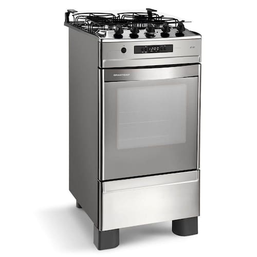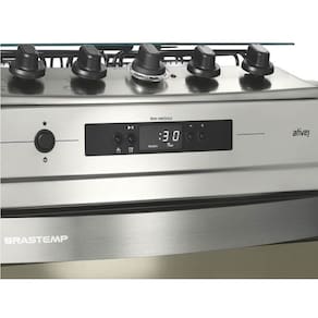 "O fogão Brastemp 4 BOCAS GRILL possui design moderno e sofisticado com o vidro panorâmico, que possibilita maior amplitude para visualização e acompanhamento do prato durante o preparo.