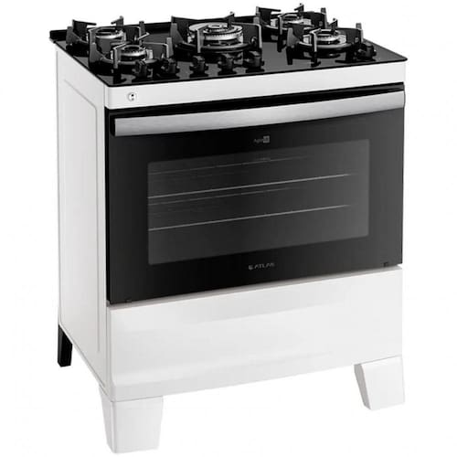 Fogão Atlas 5 Bocas Agile Glass Automático Mesa de Vidro Forno 86,5L