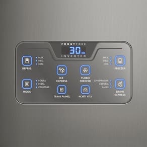 A tecnologia não para por aí. O Refrigerador IB53X também conta com um Painel Blue Touch com várias funções digitais, que também auxiliam na performance do refrigerador. Além da performance, pensamos também na comodidade e no bem estar dos nossos consumidores, por isso com apenas um toque no painel você terá bebidas resfriadas na hora.
