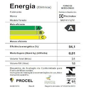 Itens Inclusos: 1 Micro-ondas Electrolux Mef41 31 Litros Branco - 220v