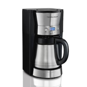 Dê o próximo passo na busca da xícara perfeita com esta Cafeteira Térmica Programável da Hamilton Beach. Com o cesto do filtro em forma de cone para uma melhor extração, e a jarra de aço inoxidável duplamente isolada para manter seu café mais quente por horas, você vai ter café fresquinho e delicioso sempre que quiser!