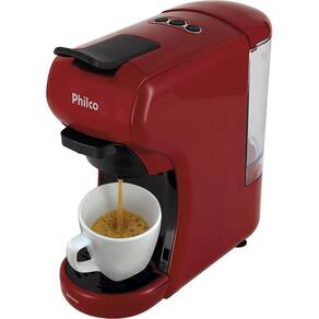 Na cor vermelha, a cafeteira expressa multicápsula philco é feita em plástico e metal, materiais resistentes e duráveis, além da fácil manutenção. Com base antiderrapante, a cafeteira vermelha philco evitará eventuais acidentes durante seu uso.