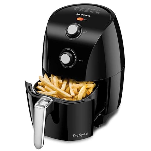 Com a incrível Fritadeira Easy Fry da Mondial tudo isso está ao seu alcance. Painel em design moderno e sofisticado, lâmpadas-piloto que indicam o funcionamento do produto e do aquecimento, controle de temperatura até 200ºC para a escolha da temperatura ideal de acordo com diferentes tipos de alimentos, cesta removível com capacidade de 1,5L revestida de antiaderente, alça fria para maior segura e prática para facilitar o manuseio dos alimentos, timer de 30min com sinal sonoro e desligamento automático.