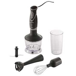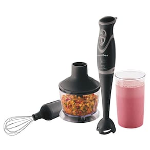 - 3 em 1: mixer, triturador e batedor de clara em neves - 2 velocidades para diferentes tipos de alimentos - Lâminas destacáveis em aço que facilitam a limpeza - Botões emborrachados - segurança e conforto no manuseio - Cabo anatômico - Desmontável - facilidade e praticidade no encaixe e limpeza - Design moderno (maior conforto no manuseio)Acompanha copo