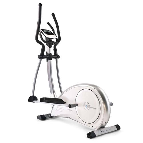 Elíptico Magnético com sistema de carga digital, visor, sensor de batimento cardíaco e suporte para squeeze. Possui visor com 7 funções (tempo, velocidade, RPM, distância, calorias, ritmo e frequência cardíaca).