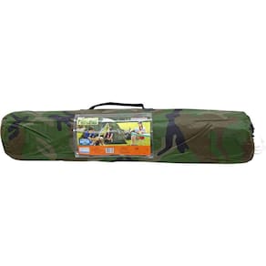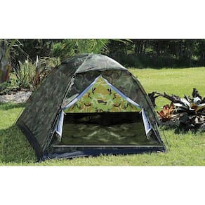 Tecido da barraca 100% poliéster. Piso 100% polietileno. Varetas 100% fibra de vidro. Mosquiteiro na porta e no teto. Local para pendurar lanterna dentro da barraca. Proteção contra vazamentos, 30mm de coluna d' água. Acompanha sacola de transporte.