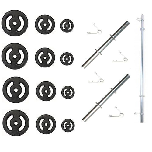 As anilhas que acompanham o kit Anilhas Ferro Fundido 40 KG + Barras Com Presilhas, são fabricadas em ferro fundido, com pintura na cor preta dando um acabamento especial ajudando na proteção contra oxidação. As anilhas possuem marcação da numeração referente ao seu respectivo peso além de possuírem vão para pegada podendo ser utilizada em diversos outros exercícios. As anilhas possuem furação central com diâmetro de 33mm, servindo assim para a grande maioria das barras.
