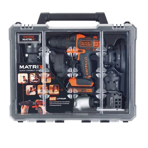 Ferramenta Black+Decker Matrix Combinadas 6 em 1 20V Bivolt BDCDM6KITC-BRConheça agora o Jogo de Ferramenta Max com seis cabeçotes, ideal para diversas aplicações em cortes, lixamentos, furos e parafusamentos. A parafusadeira pode ser utilizada em diversas funcionalidades através dos cabeçotes intercambiáveis que acompanham o kiti. Através do sistema quick connetc, é possível substituir o cabeçote da máquina com apenas um click.Especificações Técnicas:- Marca: Black + Decker- Modelo: BDCDM6KITC- Tipo: Sem fio- Materia prima: Poliamida - Tipo de embalagem: Maleta Plástica- Dimensões (AxLxC): 23,5 x 7,5 x 21,5 cm- Peso: 1,44 kg- Encaixe/Furo: Mandril 3/8 (10mm) com aperto sem chave, Engate rapido, Hexagonal 1/4 (6,35mm).- Tipo de motor: Universal (Corrente Contínua)- RPM: 0-800- Tensão: Bivolt- Voltagem: 20V- Tipo de bateria: Lítio-Ion- Capacidade de Bateria: 1,5- Garantia: 12 meses