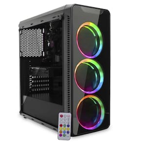 Gabinete gamer com Led Rgb - Conexão para saída de som e conector para microfone - Porta Usb frontal - Lateral transparente em vidro temperado - 7 slots de expansão