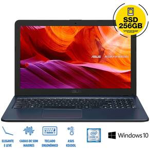 Notebook Asus Core i3-6100U 4GB 256GB SSD Tela 15.6" Windows 10 X543UA- GQ3157T
