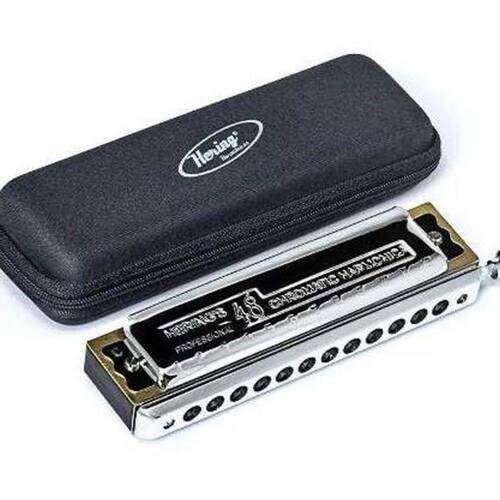 Características: Marca: Hering Modelo: Chromatic Tipo: Cromática Afinação: C ( Dó ) Palhetas: 48 Numero de Furos: 12 Oitavas: 3 Chapa: Latão 1,07 mm Corpo: ABS Tampas: Cromada Peso: 300 g