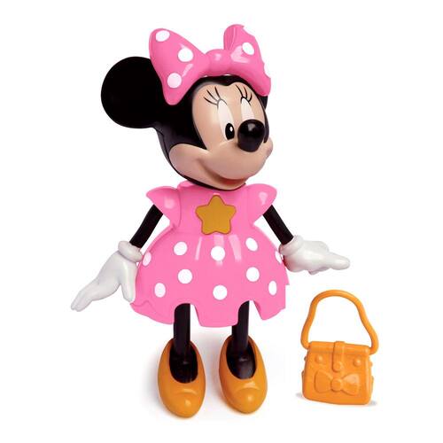 A Minnie é uma ratinha adorável que adora conversar e contar histórias. Esta bonequinha tem o corpo articulado e uma linda bolsinha para passear. Para completar o charme, a estrelinha no vestido, quando pressionada, acende uma luz e a Minnie começa a contar suas historinhas.