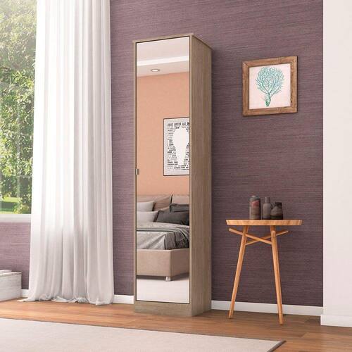 Armário que une sofisticação e praticidade devido ao bom número de prateleiras e dimensões ideais para encaixar em qambiente. A porta com sua área total em espelho traz requinte e beleza ao produto.