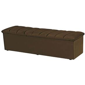 Calçadeira tipo baú com tampo superior em formato de gomos em alto relevo, estrutrura de madeira branca tratada, tapeçada com espuma de poliuretana, revestimento em material sintético com malha da marca couro rios, espaço interno para guardar edredons e travesseiros.