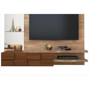 Painel para TV Bancada Suspensa Turim Rústico/Castanho da Dj Móveis, lançamento moderno e robusto, ideal para dar um destaque a mais na sua TV e na sua sala. Detalhes sofisticados como espelho, prateleiras de vidro e porta com detalhe em mosaico agregam beleza e requinte ao ambiente. Estrutura 100% MDF, mais durabilidade e resistência. Confira!