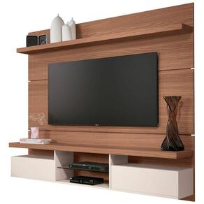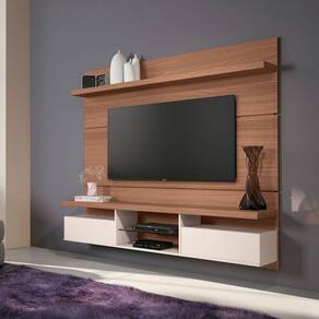 O Painel Suspenso com Bancada Livin 1.8 Nature/Off White é um Painel que suporta até 55 Polegadas, com 02 portas basculantes, 01 prateleira de vidro 6 mm com suportes de silicone e bancada superior e inferior para objetos decorativos e Aparelhos eletrônicos, confira!.