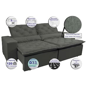Sofá Lisboa 3,12m Retrátil, Reclinável com Molas no Assento Tecido Suede Velusoft Grafite - Cama InBox
