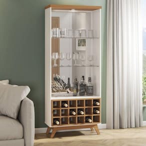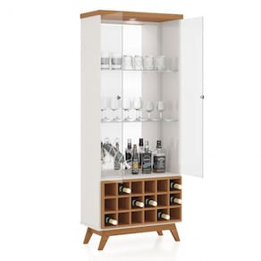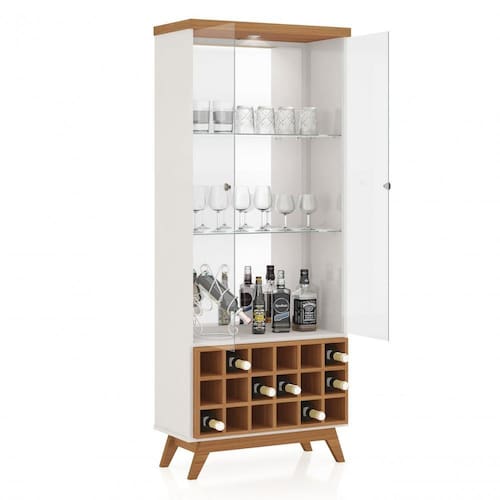 A cristaleira é um item que remete luxo e elegância, anteriormente era utilizada apenas para armazenar cristais e louças. No entanto, os seus usos na decoração contemporânea podem ir além disso; sem contar que o móvel não precisa mais ficar especificamente na sala, como antigamente. Descubra o potencial da cristaleira e não tenha medo de ousar dando à ela novas funcionalidades. Esta cristaleira no estilo retrô é fabricada 100% em MDF e com acabamento em pintura ultravioleta. Possui dobradiças plásticas, puxadores metálicos, portas de vidro, além de LED e espelhos que trazem maior sensação de amplitude ao ambiente. Modernize seu ambiente com um toque do passado!