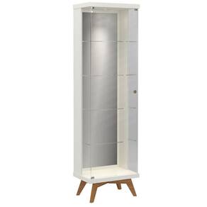 CRISTALEIRA RETRÔ 1 PORTA VIDRO LED - OFF WHITE/FREIJÓ