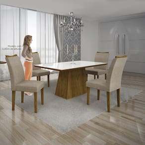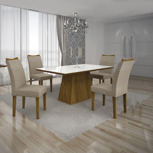Conjunto Mesa Pampulha 1,20x0,80m Com 4 Cadeiras Vidro Linho - Leifer