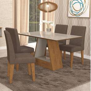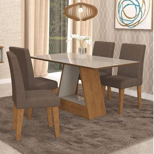 Mesa Alana com tampo de vidro Cimol. Poder reunir a família e os amigos ao redor de uma sofisticada e elegante mesa de jantar, onde você proporcionará aos convidados situações mais agradáveis e descontraídas. Conjunto de Cadeiras Milena Cimol! Essa Cadeira é ideal para sala de jantar, sala ou varanda conferindo à Decoracao do ambiente sofisticação e requinte. O design inovador da Cimol oferece ao ambiente um estilo moderno e de bom gosto, além de matéria-prima de excelente qualidade.adeira Maciça do TampoEucalipto
