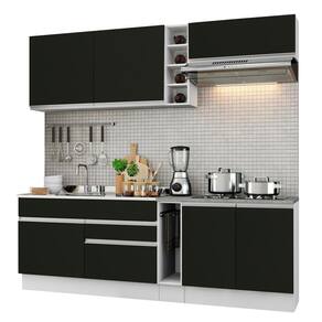 O acabamento da estrutura interna e externa é branco. As portas e as frentes das gavetas são pretas. Os processos são feitos em Poliéster Protetor ecológico de alta resistência, que protege o móvel dos efeitos da água, do álcool e do calor.