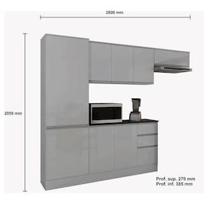 A Cozinha Compacta 9 portas 2 gavetas Paris Plus da Poliman é moderna com designer diferenciado, para quem deseja qualidade e espaço na cozinha. Paneleiro fechado amplo com prateleiras internas, aéreo triplo com prateleira, aéreo 01 porta basculante com pistão a gás que pode ser usado sobre geladeira ou sobre o depurador do fogão otimizando espaços, puxadores perfil em alumínio, pés reguláveis e rodapé que acompanha o produto (de montagem opcional) que pode ser montada conforme sugestão da foto ou adequada ao seu ambiente, acompanha balcão tampo 3 portas e 2 gavetas com corrediças metálicas deslizantes e tampo com revestimento lacca ônix alto brilho. Produto em MDP, pintura UV de alta resistência e fácil limpeza, disponível em padrões de cores que combinam com os mais variados ambientes. Qualidade que só a Poliman oferece em seus produtos.