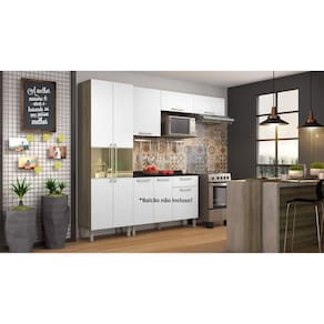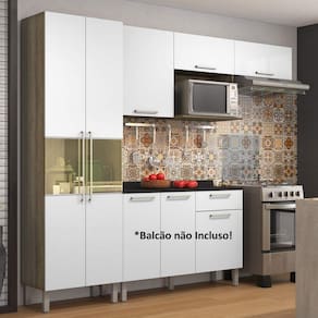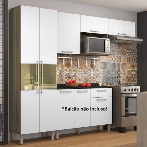 Cozinha Compacta Paneleiro e Armário Aéreo 5 Portas 1 Nicho Star Itatiaia Castanho/Branco