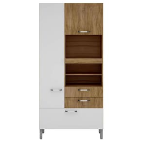 Para você que busca mais espaço para guardar os utensílios domésticos, está na hora de conhecer esse prático Paneleiro Duplo, da Bartira. O modelo Ônix é robusto e elegante, contando com 2 portas, sendo uma de bater e outra com abertura basculante (pistão a gás), e três gavetas, sendo duas menores e uma chamada de gavetão. Todas (portas e gavetas) com puxadores externos.