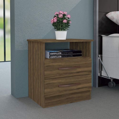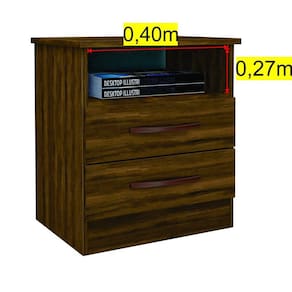 Mesa de Cabeceira 2 Gavetas e 1 Nicho Modena Albatroz Móveis Cedro - MARROM CACAU