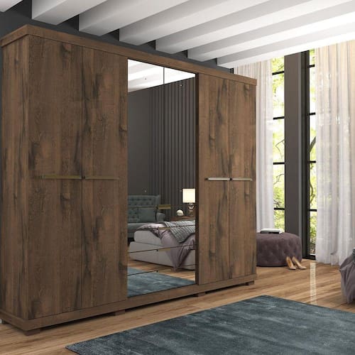 Roupeiro Linhares 6 Portas - 100% MDF - Com Espelho - Café/Off White - Panan