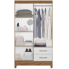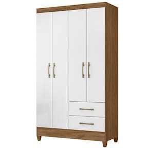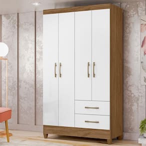 O guarda-roupa Chile, possui 4 portas e 2 gavetas laterais com corrediças metálicas. Produto em MDP, com puxadores na tonalidade bronze. Ideal para quartos onde o espaço é compacto.