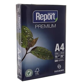 Papel Sulfite A4 Branco Premium com 5000 Folhas Report, papel gramatura 75 g/m² medindo 210x297mm, ideal para todas as atividades do seu dia-a-dia, relatórios, orçamentos, trabalhos escolares, etc É um papel de alta performance, fabricado a partir de celulose de eucalipto provenientes de florestas renóvaveis e possui a certificação FSC - Forest Stewardship Council