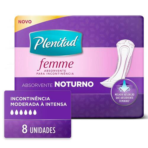 Absorvente Plenitud Femme Noturno Sem Abas - 8 Unidades