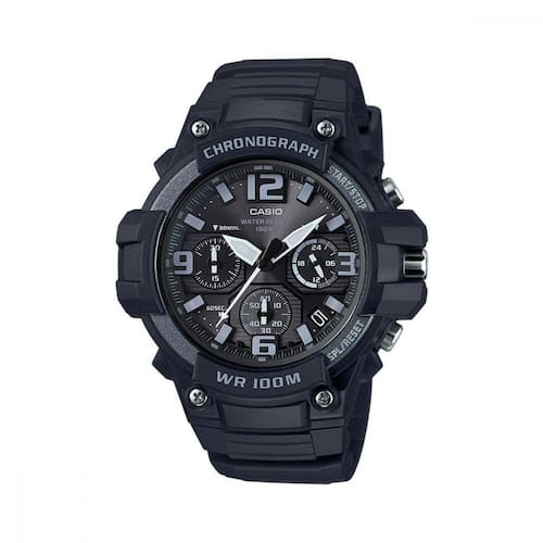 Características: Design do Relógio: Esportivo Tipo de Fecho: Fivela Tipo de Relógio: Analógico Gênero: Masculino Fabricante: Casio Recomendações: Não apertar o botão de baixo d agua Capacidade de Resistência na Água:10.0 Funções: Cronômetro, Modos de medição: tempo transcorrido, divisão de tempo, tempos do 1º e 2º lugares, Horário regular Linha: Standard Modelo: MCW-100H-1A3VDF Origem: Importado Material da Caixa: Resina Material da Pulseira: Resina